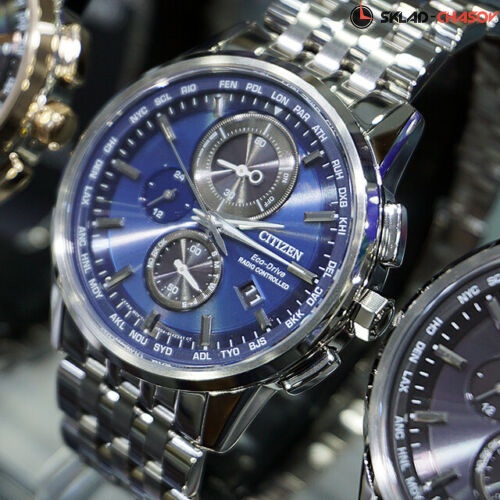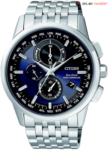 Многофункциональные и элегантные мужские часы World Chronograph A-T. Корпус и литой браслет из нерж. стали, сапфировое стекло. Кварцевый механизм Eco-Drive. Коррекция времени по радиосигналам, хронограф, мировое время и вечный календарь.