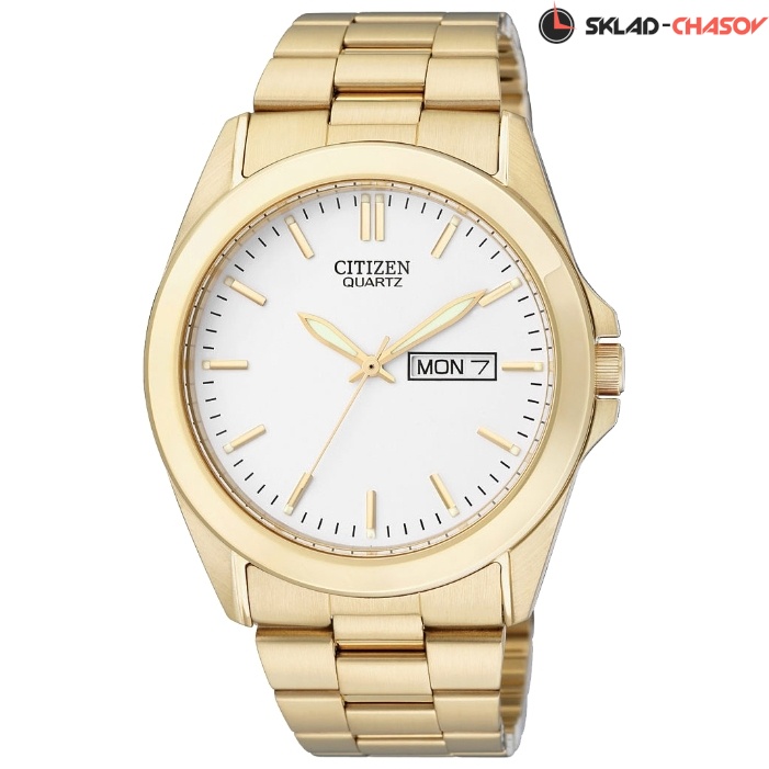 Кварцевые часы. Калибр 1102. 12 часовой формат времени. Индикатор числа и дня недели. Заводная головка с защитой. Люминесцентные стрелки и метки. Корпус и браслет из нержавеющей стали с PVD покрытием цвета золота. Минеральное стекло. Диаметр 41 мм.