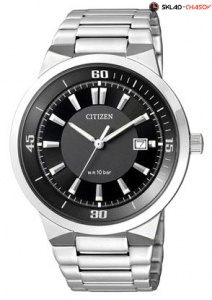 Корпус и браслет из нержавеющей стали. Часы, минуты, секунды. Индикация числа. Люминесцентные стрелки и метки. Диаметр корпуса 41 мм.