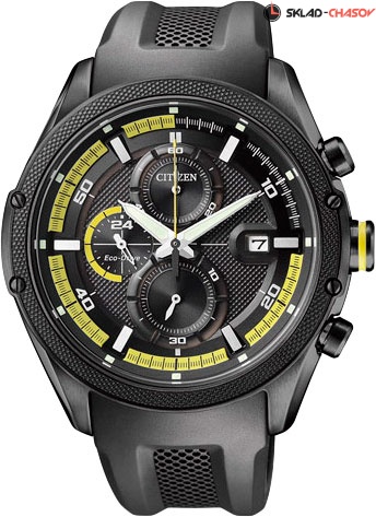 Часы-хронограф с секундомером. Система Eco-Drive не требующая замены батарейки. Питание от солнечной энергии. 12-ти и 24-х часовой формат времени. Завинчивающаяся задняя крышка.