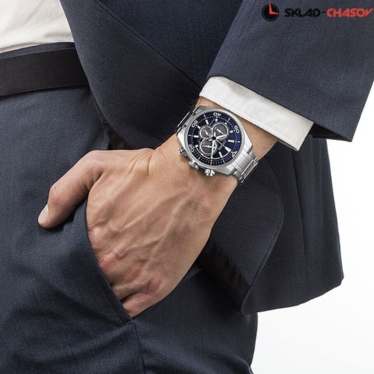 Спортивный дизайн, массивный корпус и широкий функционал придадут уверенности и решимости в любой ситуации. Система Eco-Drive, не требующая замены батарейки. Питание от солнечной энергии, запас энергии на 270 дней. Функция индикации заряда (EOL) и предотвращения перезарядки. Часы-хронограф с секундомером до 1ч, точность 1/5c. 12-ти и 24-х часовой формат времени. Завинчивающаяся задняя крышка. Браслет с раскладывающейся застежкой. Застежка с системой блокировки.