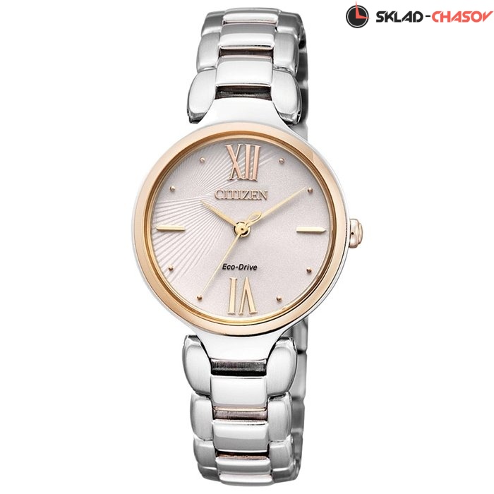 производитель citizen, тип механизма кварцевые, способ отображения времени аналоговый (стрелки), цифры римские, формат времени 12 часов, секундная стрелка центральная, источник энергии от солнечной батареи, форма круг, тип женские, класс водонепроницаемости wr50 (5 атм), ширина 28 мм, толщина 8 мм, материал корпуса нерж. сталь, материал браслета/ремешка нерж. сталь, стекло минеральное, вес 62 г, современный дизайн.