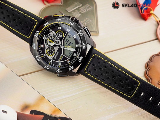 Эти спортивные часы оснащены сверхточным секундомером. С ними удобнее фиксировать свои рекорды. Promaster. Система Eco-Drive, не требующая замены батарейки. Питание от солнечной энергии, запас энергии на 240 дней. Функция индикации заряда (EOL) и сохранения энергии. Время работы при включенной функции сохранения энергии до 7 лет. Аналогово-цифровые часы-хронограф с секундомером до 24 часов, точность 1/1000с. Сплит-хронограф. Измерение скорости. Память на 20 этапов. Таймер обратного отсчета от 1мин до 99мин. Мировое время - 43 города. Всемирное координированное время (UTC). Вращающийся безель. Заводная головка с защитой. Завинчивающаяся задняя крышка. Браслет с раскладывающейся застежкой. Застежка с системой блокировки.