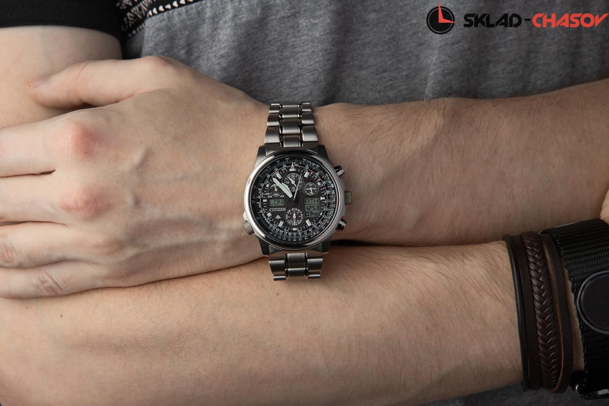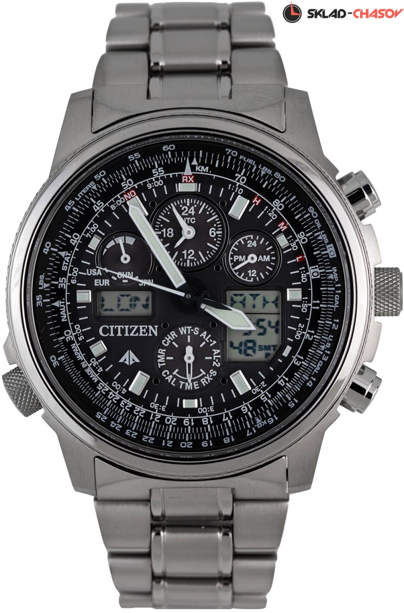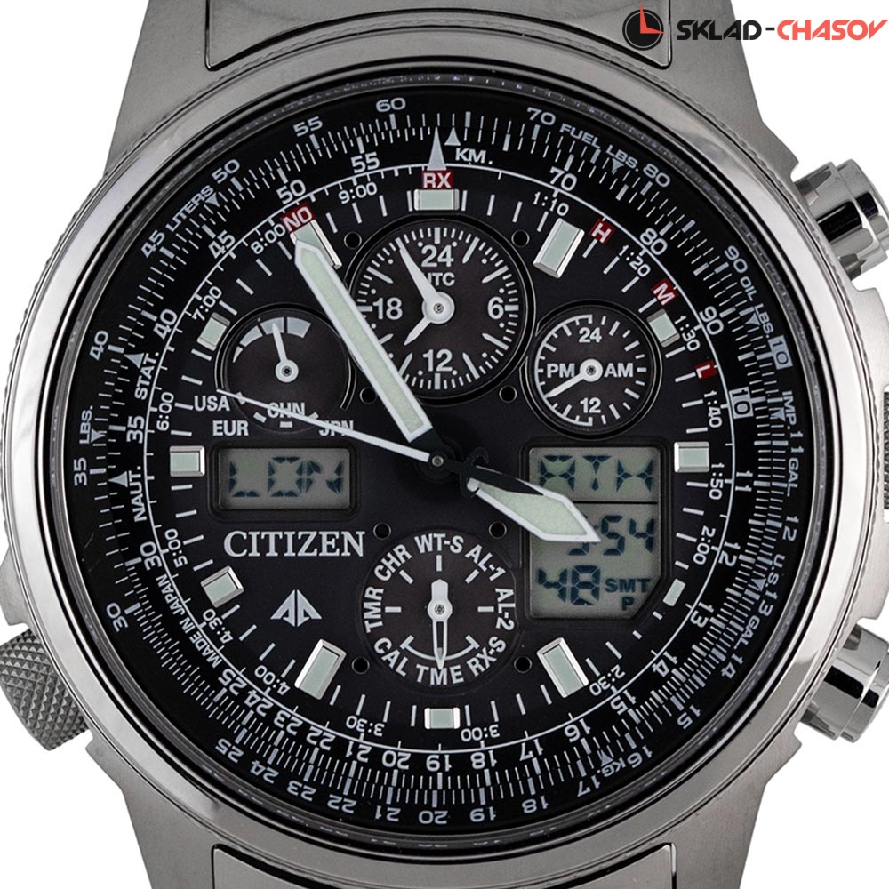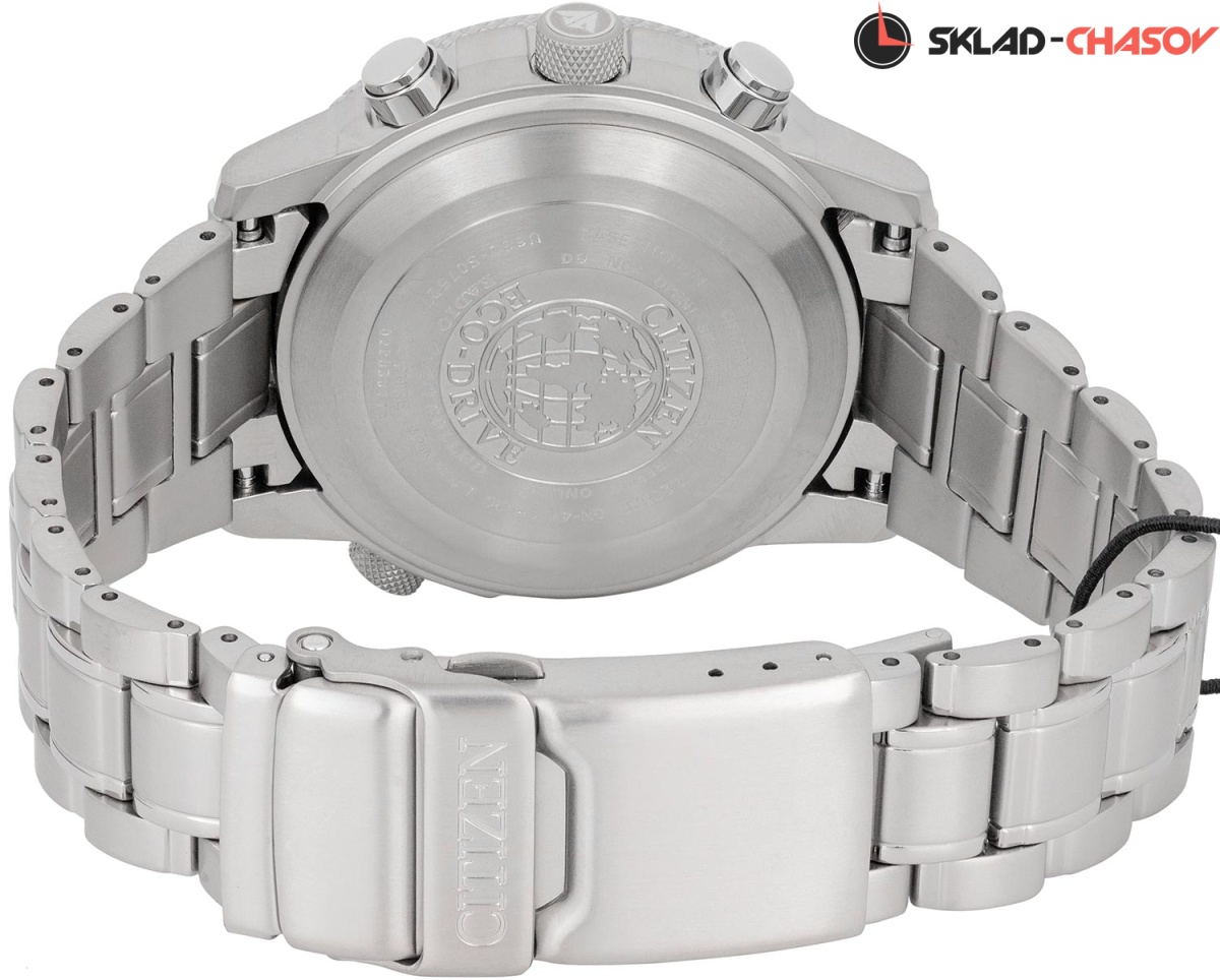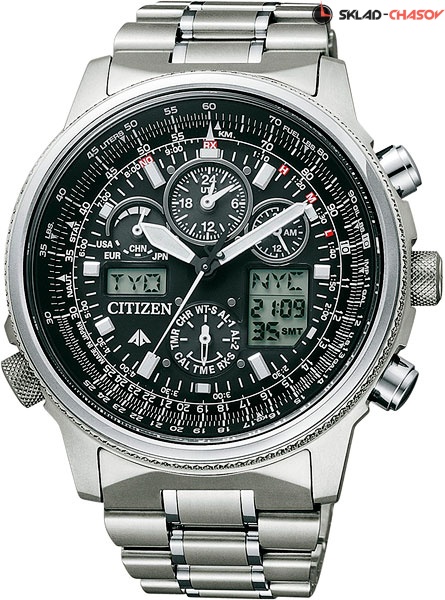 Система Eco-Drive не требующая замены батарейки. Питание от солнечной энергии, запас энергии на 180 дней. Автоматическая настройка времени по радиосигналу в Европе, США, Японии и Китае. Часы-хронограф с секундомером с точностью показаний 1/100c и временем измерения 24ч. Таймер обратного отсчета. Мировое время. 12-ти и 24-х часовой формат времени. Логарифмическая линейка. Застежка с защитой от самопроизвольного раскрывания.