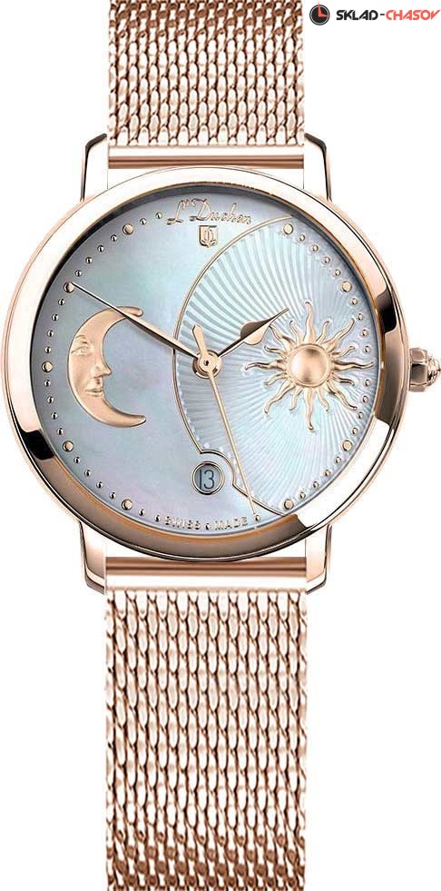 Элегантный аксессуар с интригующим дизайном идеально подойдет женщине, которая предпочитает изысканный стиль. Наручные кварцевые часы Day & Night. Круглый стальной корпус c полированной поверхностью. Перламутровый циферблат украшен узором из волнистых линий. Узкие листовидные стрелки в стиле Feuille. Метки в виде точек, 12-ти часовая метка в виде логотипа. Окошко даты находится в положении 6 часов. Граненая заводная головка. Удобный и надежный стальной миланский браслет.