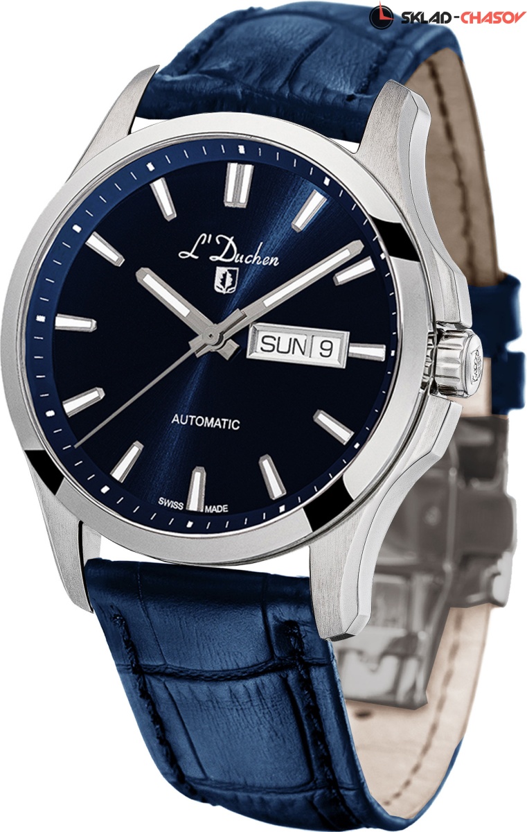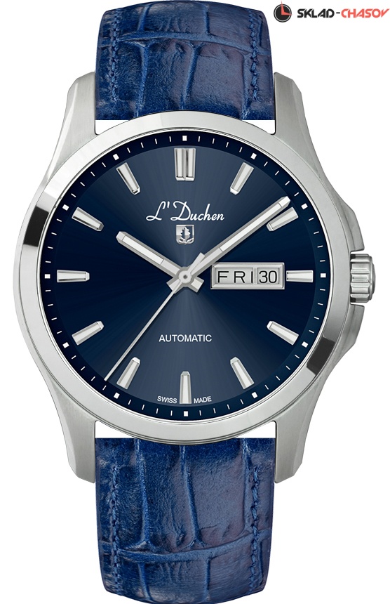 Циферблат часов защищен сапфировым стеклом с антибликовым покрытием. Повышенная водостойкость составляет 10 атмосфер, задняя крышка крепится на четырех винтах. Ремешок часов сделан из натуральной кожи эффектного синего цвета с прошивкой. Застежка-клипса декорирована логотипом бренда.