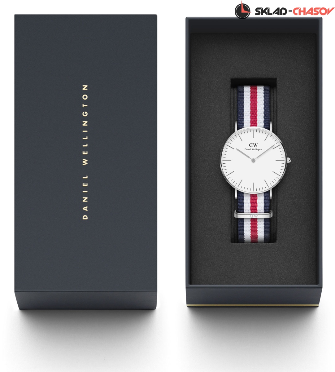 Традиционные форменные цвета - синий, красный, белый, используемые в дизайне часов, отлично подчеркнут ваш новый стиль ''Preppy''. Classic Canterbury. Ультратонкие. Имеется мужской вариант модели DW00100016.