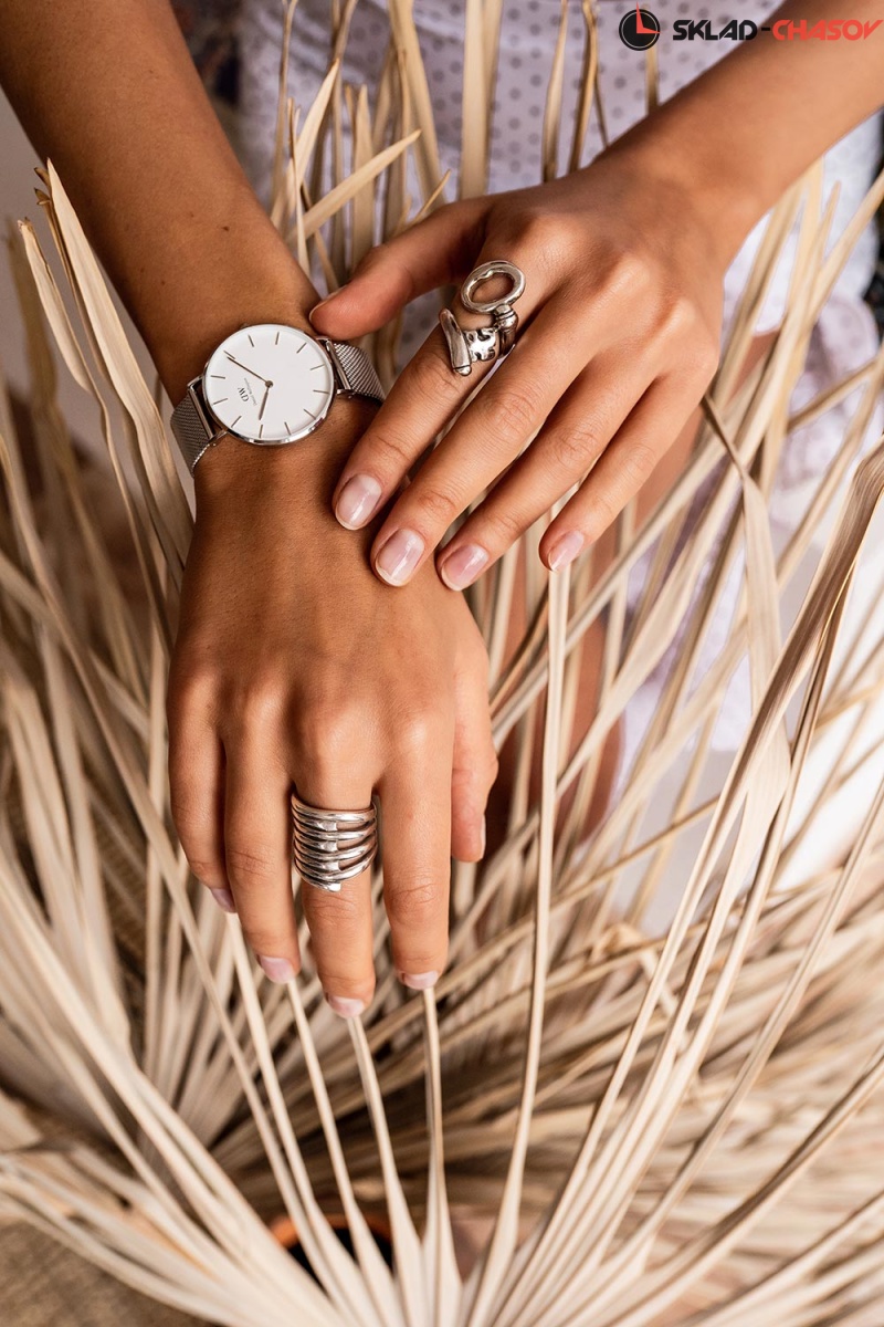 Элегантный стиль часов лишен излишества и сиюминутности, этот аксессуар прекрасно подойдет для девушек с тонким вкусом. Petite Sterling. Ультратонкие. Браслет миланского плетения. Дополнительно к часам в комплект можно приобрести фирменные украшения Daniel Wellington.