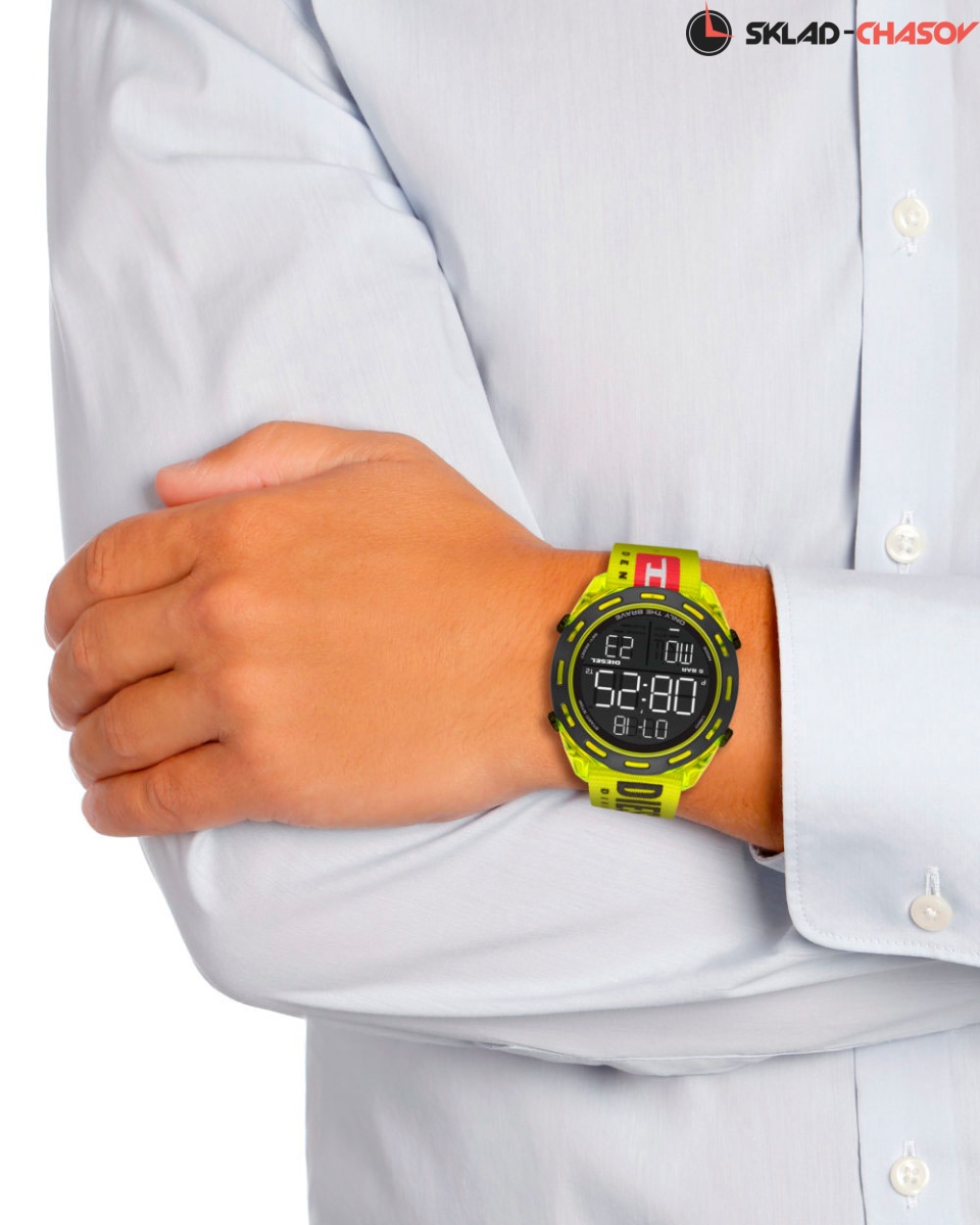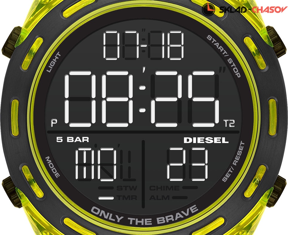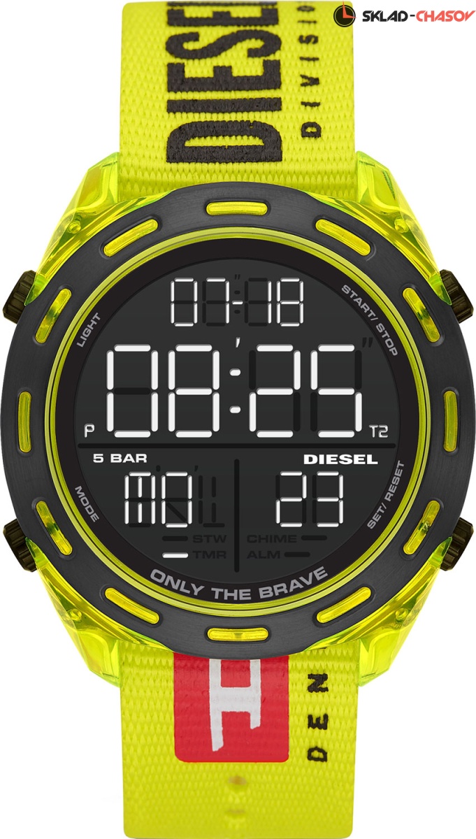 Фантастический мужской хронограф добавит импульс вашей жизни. Модный дизайн этих часов привлечет внимание и прекрасно дополнит ваш образ в любом месте. Crusher. 46-миллиметровые цифровые часы-хронограф с секундомером. 12-ти и 24-х часовой формат времени. Корпус из нейлонового волокна со стальным безелем. Матовый черный циферблат. Желтый нейлоновый ремешок с черно-красным логотипом.