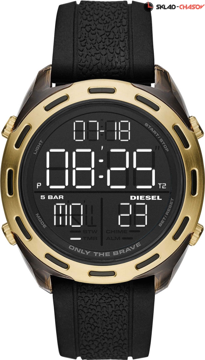 Модный дизайн этих часов привлечет внимание и прекрасно дополнит ваш образ в любом месте. Crusher. 46-миллиметровые цифровые часы-хронограф с секундомером. 12-ти и 24-х часовой формат времени. Матовый черный циферблат. Корпус из нейлонового волокна со стальным безелем.