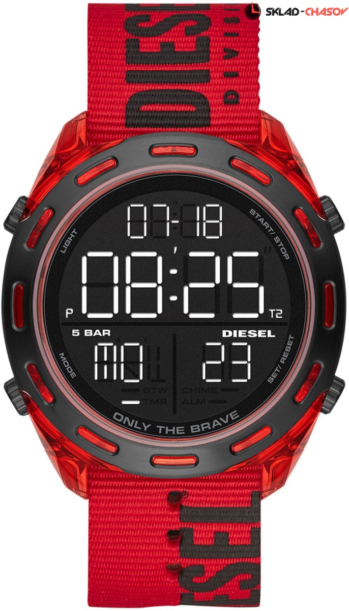 Фантастический мужской хронограф добавит импульс вашей жизни. Модный дизайн этих часов привлечет внимание и прекрасно дополнит ваш образ в любом месте. Crusher. Часы-хронограф с секундомером. 12-ти и 24-х часовой формат времени. Корпус из нейлонового волокна. Стальной безель. Круглый корпус. Задняя крышка крепится на винтах. Красный ремешок с логотипом Diesel. Классическая застежка.