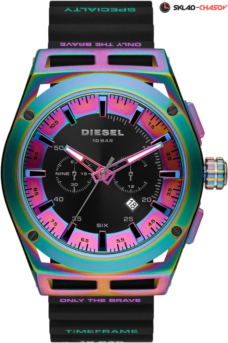 Идеальные часы для активных людей, безудержных в своем стремлении действовать и двигаться вперед. Timeframe Specialty. Часы-хронограф с секундомером. Круглый стальной корпус Хамелеон. Окошко даты. Силиконовый ремешок с классической застежкой.