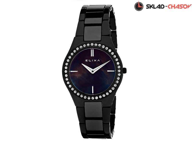 Женские кварцевые часы на браслете с керамическими вставками. Механизм SEIKO EPSON. Корпус и браслет из нержавеющей стали + BLACK IP. Сапфировое стекло. Диаметр корпуса 31мм. Водозащита 30м.