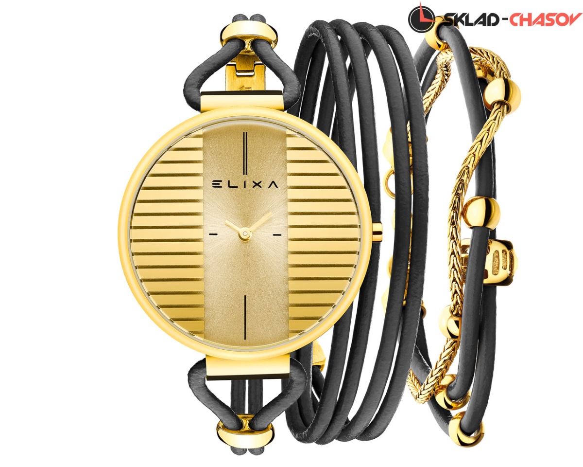 Кварцевые наручные часы Elixa E133-L574-K1 на ремне из натуральной кожи теленка. Ремень необычной формы, штатный. В комплекте идет дополнительный кожаный браслет. Механизм SEIKO EPSON. Корпус часов из нержавеющей гипоаллергенной стали. Циферблат круглый. Диаметр корпуса 38 мм.