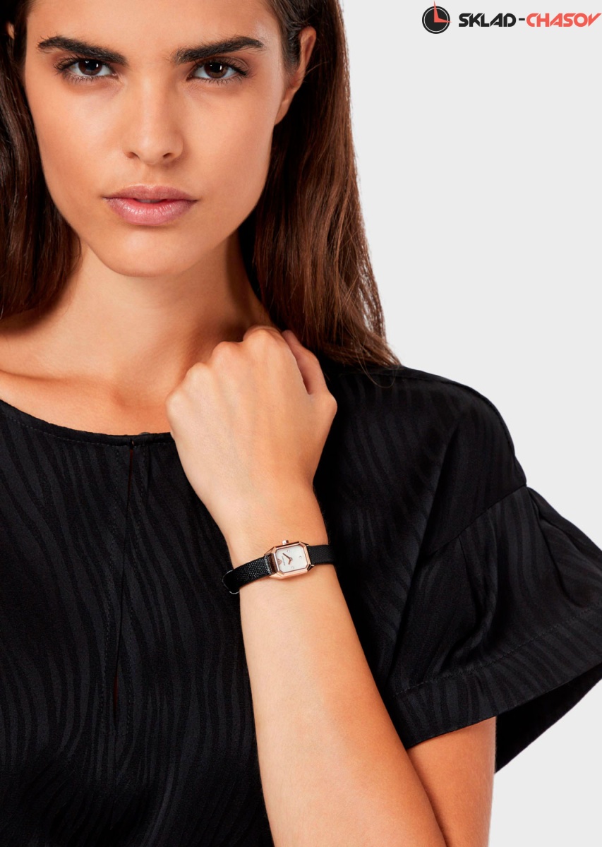 Эти утонченные миниатюрные часики подчеркнут изящество и чувственность своей элегантной обладательницы. Gioia. Изящные женские часы с прямоугольным стальным корпусом. Перламутровый циферблат часов с кристальными метками. Черный кожаный ремешок с классической застежкой.