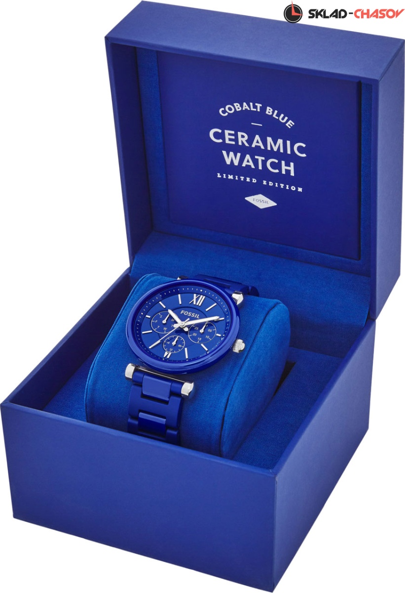 Эти стильные часы - выбор активной и свободной женщины, не взирающей на условности и запреты. Carlie Multifunction Blue Ceramic. Лимитированная серия 1000 экземпляров. 12-ти и 24-х часовой формат времени. 24-х часовой формат времени, число и день недели отображаются на отдельных циферблатах. Рифленая заводная головка. Круглый корпус. Стальная задняя крышка. Керамический браслет с тройной раскладывающейся застежкой.