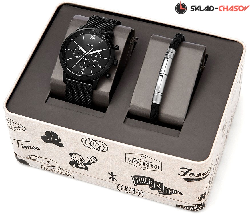 Стильный мужской хронограф на браслете миланского плетения с ремешком на руку в комплекте. Гарантия 2 года.