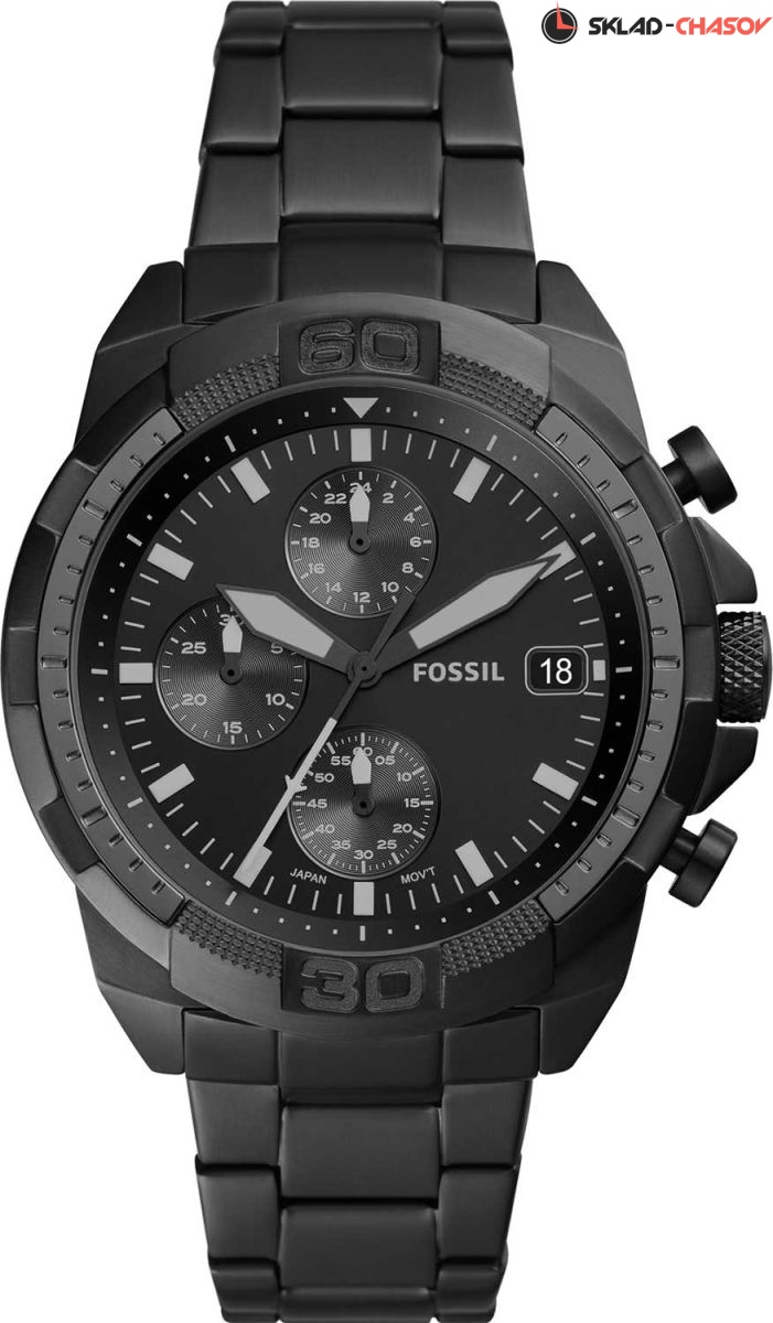 Стильные мужские наручные часы-хронограф от Fossil. Присутствует апертура даты. Заводная головка с защитой. Браслет с раскладывающейся застежкой.Гарантия 2 года.