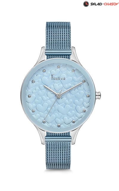 Корпус: нержавеющая сталь, цвет серебристый, размер 34 мм, водозащита 3 ATM. Браслет: нержавеющая сталь, цвет голубой, размер 12 мм. Механизм: японский кварцевый, калибр EPSON Y121. Цвет циферблата голубой, стекло минеральное.