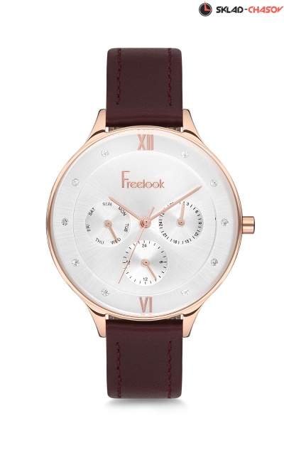 Корпус: нержавеющая сталь, цвет розовое IPG, размер Ø32 мм, водозащита 5 ATM. Ремешок: натуральная кожа, цвет коричневый, размер 14 мм. Механизм: японский кварцевый, калибр TMI VX3JE, Swarovski. Цвет циферблата белый, стекло минеральное.