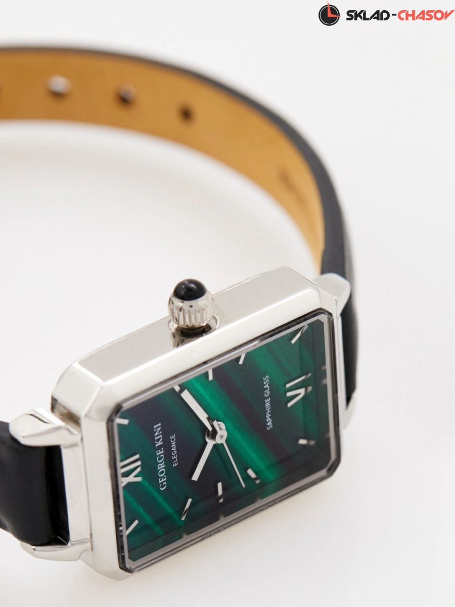 Женские часы George Kini Elegance GK.EL0002. Точный кварцевый механизм с аналоговой индикацией. Корпус изготовлен из высококачественной нержавеющей стали 316L с высокими антикоррозийными свойствами. Ремешок изготовлен из кожи. Минерально стекло с сапфировым антибликовым покрытием. Такое покрытие предотвращает появление царапин и повышает прочность стекла в несколько раз. Часы являются водонепроницаемыми до 3 Бар. Цвет корпуса: Серебристый. Цвет циферблата: Зеленый. Ширина (с заводной головкой): 22мм. Толщина: 6мм. В комплекте сменный ремешок. Гарантия: 2 года.