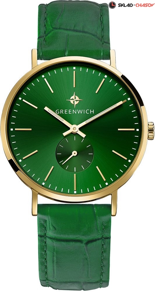 Задняя крышка часов украшена изображениями «розы ветров» и корабля, который является символом марки Greenwich