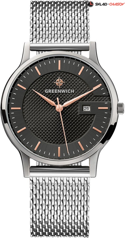 Классические мужские часы серии Breeze прекрасно подойдут как под костюм, так и под одежду направления casual. В часах установлен высококачественный японский механизм. Корпус часов довольно тонкий и изготовлен из нержавеющей гипоаллергенной стали. Размер корпуса 40 мм. Двухуровневый стальной циферблат выглядит объемным из-за того, что часть выполнена в технике гильоше «женевские гвоздики», а окантовка сделана в виде буквы G с фаской по внутреннему краю. Индексы часов изготовлены вручную и закреплены на двух штифтах. Часовая и минутная стрелки имеют мечеобразную форму и выглядят объемными. В модели представлена дополнительная функция – дата. Окошко даты расположено на циферблате на уровне трех часов. Циферблат надежно защищен минеральным стеклом. На часах установлен стальной браслет миланское плетение. Логотип марки – изображение «розы ветров» - символизирует удачу и новые открытия. Он расположен на циферблате, заводной головке и внутренней части ремешка. Задняя крышка часов украшена изображениями «розы ветров» и корабля, который является символом марки Greenwich. Скачать инструкцию в pdf