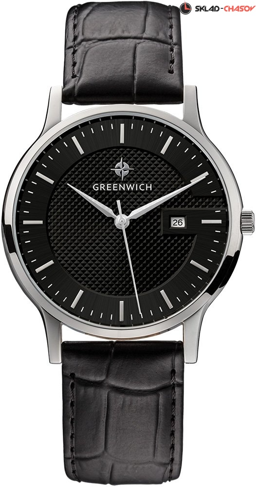 Двухуровневый черный циферблат выглядит объемным из-за того, что часть выполнена в технике гильоше «женевские гвоздики», а окантовка сделана в виде буквы G с фаской по внутреннему краю. Индексы часов изготовлены вручную и закреплены на двух штифтах. Часовая и минутная стрелки имеют мечеобразную форму и выглядят объемными. В модели представлена дополнительная функция – дата. Окошко даты расположено на циферблате на уровне трех часов.
