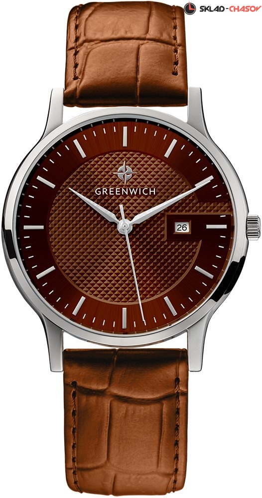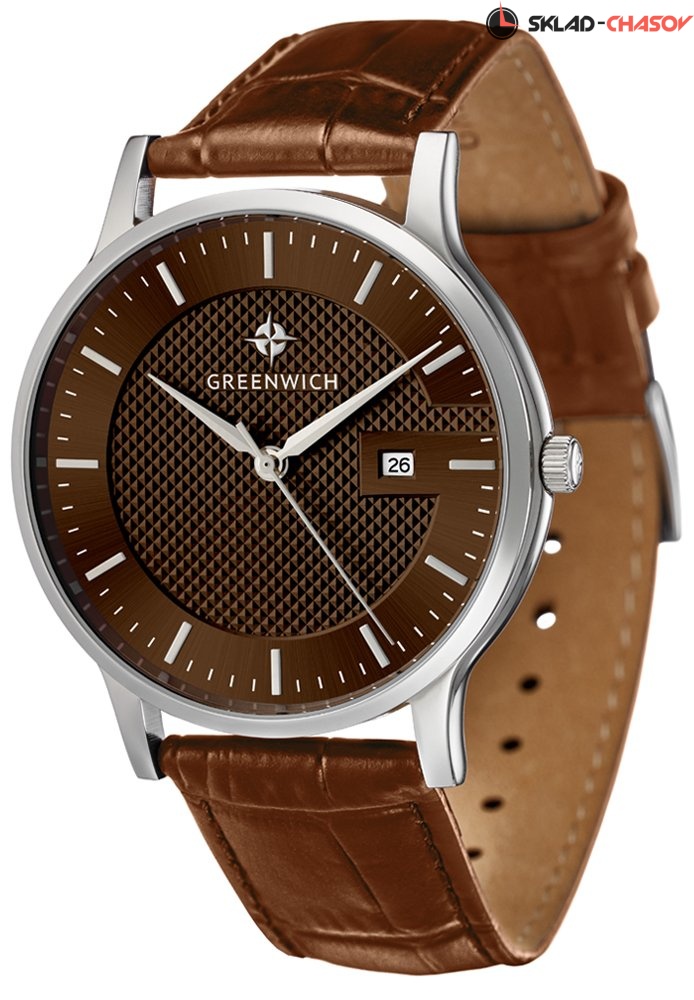 Двухуровневый коричневый циферблат выглядит объемным из-за того, что часть выполнена в технике гильоше «женевские гвоздики», а окантовка сделана в виде буквы G с фаской по внутреннему краю. Индексы часов изготовлены вручную и закреплены на двух штифтах. Часовая и минутная стрелки имеют мечеобразную форму и выглядят объемными. В модели представлена дополнительная функция – дата. Окошко даты расположено на циферблате на уровне трех часов.