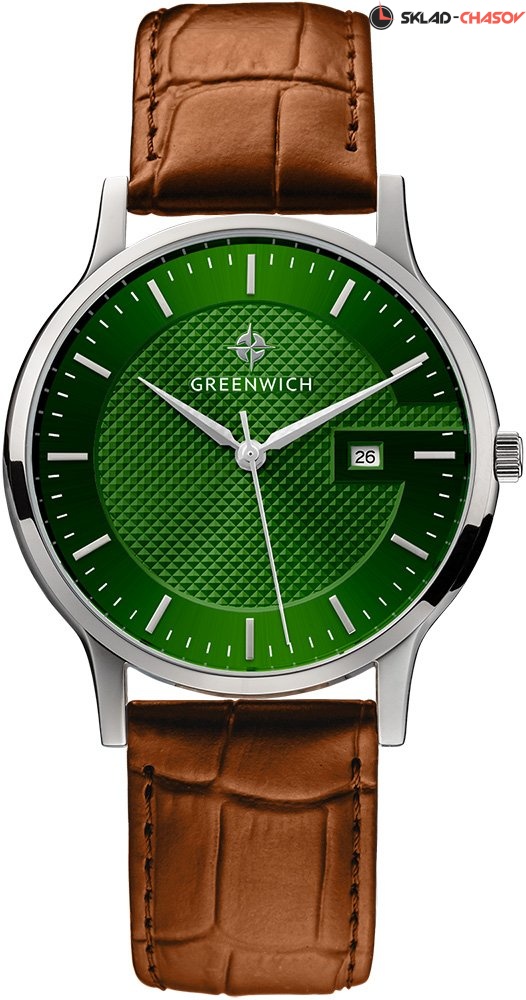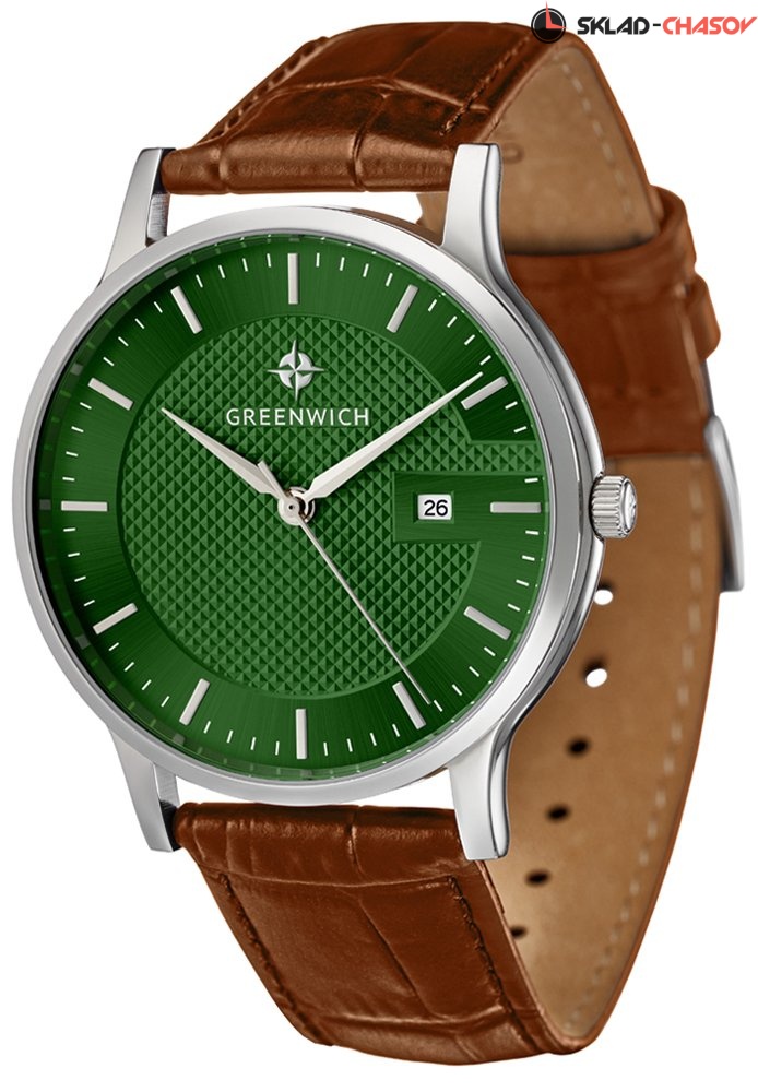 Двухуровневый зеленый циферблат выглядит объемным из-за того, что часть выполнена в технике гильоше «женевские гвоздики», а окантовка сделана в виде буквы G с фаской по внутреннему краю. Индексы часов изготовлены вручную и закреплены на двух штифтах. Часовая и минутная стрелки имеют мечеобразную форму и выглядят объемными. В модели представлена дополнительная функция – дата. Окошко даты расположено на циферблате на уровне трех часов.