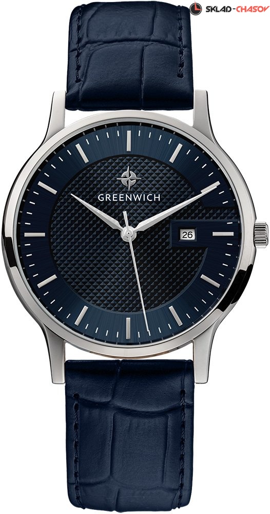 Двухуровневый синий циферблат выглядит объемным из-за того, что часть выполнена в технике гильоше «женевские гвоздики», а окантовка сделана в виде буквы G с фаской по внутреннему краю. Индексы часов изготовлены вручную и закреплены на двух штифтах. Часовая и минутная стрелки имеют мечеобразную форму и выглядят объемными. В модели представлена дополнительная функция – дата. Окошко даты расположено на циферблате на уровне трех часов.