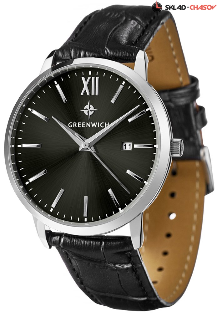 Классические мужские часы серии Brig прекрасно подойдут как под костюм, так и под одежду направления casual. В часах установлен точный японский механизм Miyota. Корпус часов изготовлен из нержавеющей гипоаллергенной стали: он изящно смотрится на руке и не создает неудобств при контакте с одеждой с длинным рукавом. Размер корпуса 41 мм. Полировка на циферблате черного цвета выполнена в виде солнечных лучей. Индексы часов изготовлены вручную и закреплены на двух штифтах. Выпуклая форма рисок создает эффект игры солнечных бликов. Объемные часовая и минутная стрелки имеют мечеобразную форму. В модели представлена дополнительная функция – дата. Ее окошко расположено на уровне трех часов. Циферблат надежно защищен минеральным стеклом. На часах установлен черный ремешок из натуральной кожи. Логотип марки – изображение «розы ветров», символа удачи и новых открытий – расположен на циферблате, заводной головке и внутренней части ремешка. Задняя крышка часов украшена изображениями логотипа и корабля, который является символом марки Greenwich.