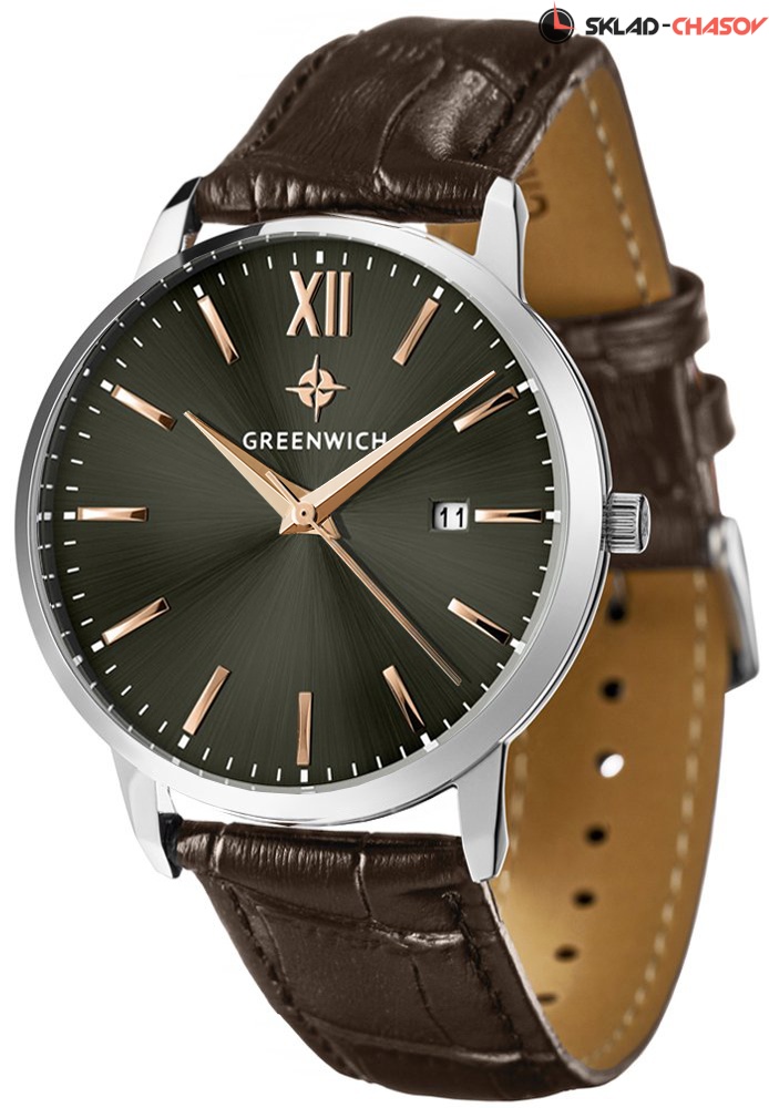 Классические мужские часы серии Brig прекрасно подойдут как под костюм, так и под одежду направления casual. В часах установлен точный японский механизм Miyota. Корпус часов изготовлен из нержавеющей гипоаллергенной стали: он изящно смотрится на руке и не создает неудобств при контакте с одеждой с длинным рукавом. Размер корпуса 41 мм. Полировка на циферблате серого цвета выполнена в виде солнечных лучей. Индексы часов изготовлены вручную и закреплены на двух штифтах. Выпуклая форма рисок создает эффект игры солнечных бликов. Объемные часовая и минутная стрелки имеют мечеобразную форму. В модели представлена дополнительная функция – дата. Ее окошко расположено на уровне трех часов. Циферблат надежно защищен минеральным стеклом. На часах установлен темно-коричневый ремешок из натуральной кожи. Логотип марки – изображение «розы ветров», символа удачи и новых открытий - расположен на циферблате, заводной головке и внутренней части ремешка. Задняя крышка часов украшена изображениями логотипа и корабля, который является символом марки Greenwich.