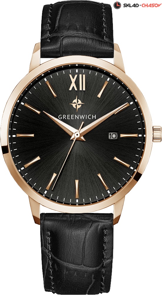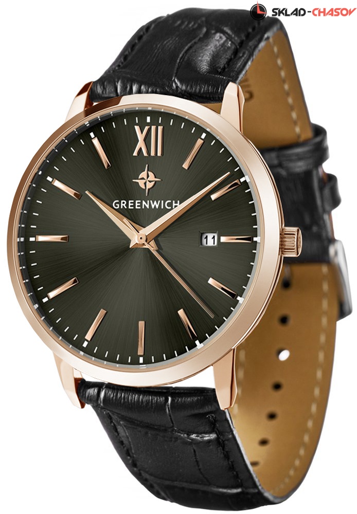 Классические мужские часы серии Brig прекрасно подойдут как под костюм, так и под одежду направления casual. В часах установлен точный японский механизм Miyota. Корпус часов изготовлен из нержавеющей гипоаллергенной стали: он изящно смотрится на руке и не создает неудобств при контакте с одеждой с длинным рукавом. Сталь дополнена PVD-покрытием из розового золота. Размер корпуса 41 мм. Полировка на циферблате черного цвета выполнена в виде солнечных лучей. Индексы часов изготовлены вручную и закреплены на двух штифтах. Выпуклая форма рисок создает эффект игры солнечных бликов. Объемные часовая и минутная стрелки имеют мечеобразную форму. В модели представлена дополнительная функция – дата. Ее окошко расположено на уровне трех часов. Циферблат надежно защищен минеральным стеклом. На часах установлен черный ремешок из натуральной кожи. Логотип марки – изображение «розы ветров», символа удачи и новых открытий – расположен на циферблате, заводной головке и внутренней части ремешка. Задняя крышка часов украшена изображениями логотипа и корабля, который является символом марки Greenwich.
