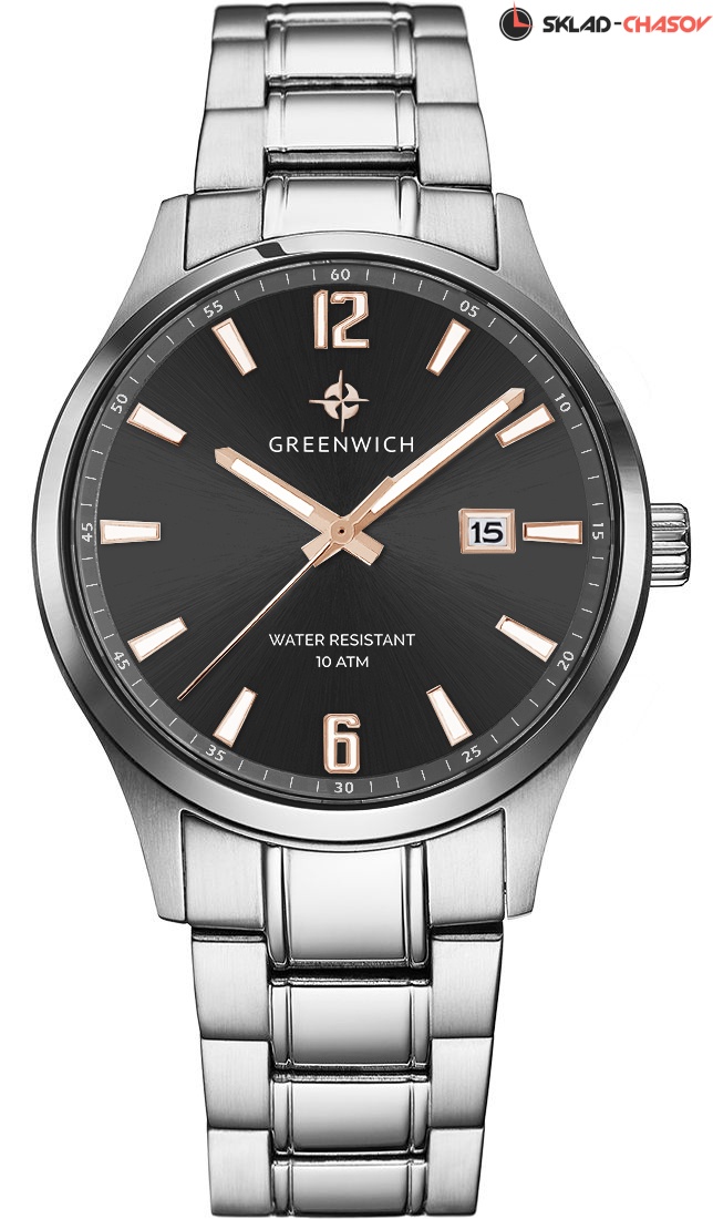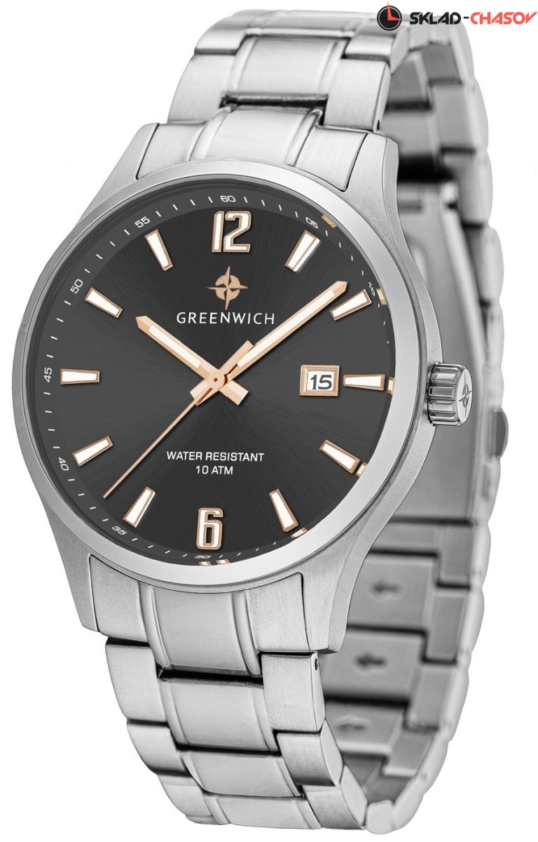 Серия мужских часов Octopus – новинка бренда Greenwich. В часах установлен надежный японский механизм. Корпус часов изготовлен из нержавеющей гипоаллергенной стали. На боковой части корпуса выполнена специальная полировка – вертикальное матирование, что визуально делает корпус тоньше. Размер корпуса 43 мм. Черный циферблат смотрится глубоким и объемным, благодаря «колодцу» по внутреннему краю с нанесенной секундной разметкой. Полировка на циферблате выполнена в стиле солнечных лучей. Индексы часов изготовлены вручную в виде трапеций и закреплены на двух штифтах. На часовую, минутную стрелки и индексы нанесено люминесцентное покрытие, что позволяет определять время в темноте. Часовая и минутная стрелки имеют мечеобразную форму. Это делает их объемными и хорошо читаемыми. Циферблат надежно защищен минеральным стеклом. Водонепроницаемость часов – 10 атмосфер, что позволяет заниматься в них водными видами спорта. Завинчивающаяся задняя крышка обеспечивает данный уровень защиты от воды. На часах установлен синий ремешок из нержавеющей стали. Логотип марки – изображение «розы ветров» – символизирует удачу и новые открытия. Он расположен на циферблате, заводной головке и внутренней части ремешка. Задняя крышка часов украшена изображениями «розы ветров» и корабля, который является символом марки Greenwich.