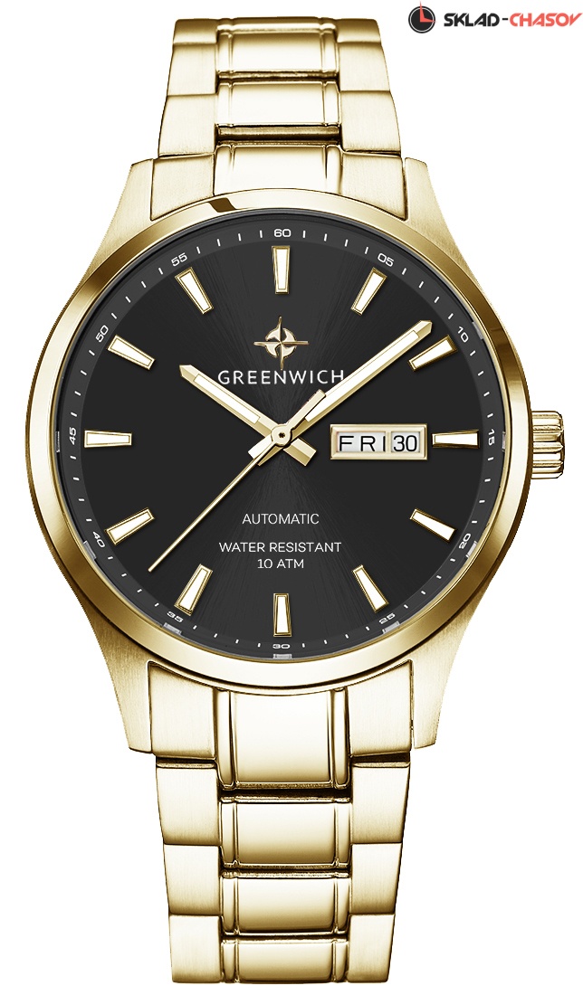 Повышенная водостойкость составляет 10 атмосфер. Часы дополняет браслет из нержавеющей стали с удобной в использовании и надежной застежкой-клипсой. Автоматические часы Greenwich хорошо подходят для того, чтобы носить их каждый день. Их универсальный дизайн сочетается практически с любыми предметами гардероба, а механизм заводится, находясь на запястье владельца.