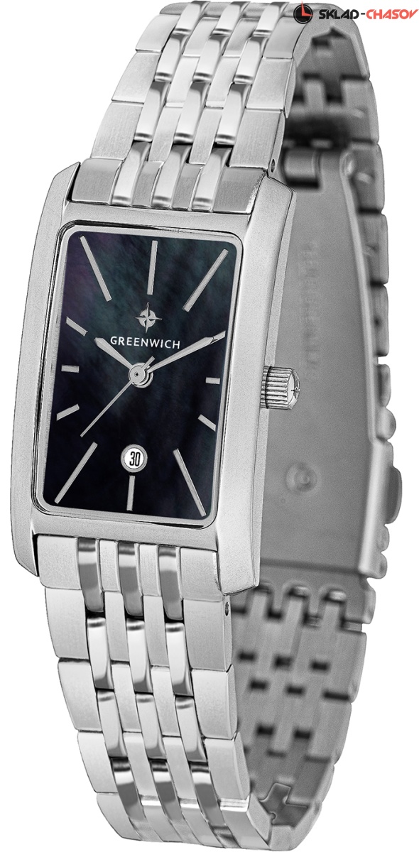 Прямоугольный корпус часов серии Vesta – настоящая находка для тех, кто хочет подчеркнуть изящество своего запястья. Лаконичный и небольшой по размеру, он хорошо лежит на руке во многом благодаря эргономичной форме. Корпус сделан из нержавеющей стали с зеркальной полировкой. Мерцание натурального перламутра черного цвета украшает циферблат. На нем расположены хорошо читаемые риски и стрелки, окошко даты выделено накладным обрамлением. Часы установлены на браслет из нержавеющей стали с застежкой-клипсой, надежной и удобной в использовании.