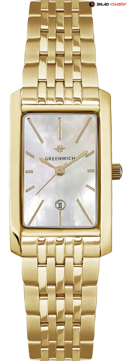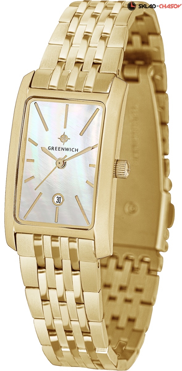 Прямоугольный корпус часов серии Vesta – настоящая находка для тех, кто хочет подчеркнуть изящество своего запястья. Лаконичный и небольшой по размеру, он хорошо лежит на руке во многом благодаря эргономичной форме. Корпус сделан из нержавеющей стали с зеркальной полировкой и PVD-покрытием из желтого золота. Мерцание натурального перламутра белого цвета украшает циферблат. На нем расположены хорошо читаемые риски и стрелки, окошко даты выделено накладным обрамлением. Часы установлены на браслет из нержавеющей стали с застежкой-клипсой, надежной и удобной в использовании.