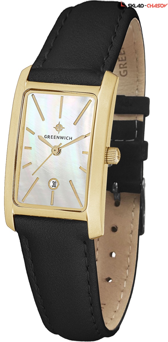 Прямоугольный корпус часов серии Vesta – настоящая находка для тех, кто хочет подчеркнуть изящество своего запястья. Лаконичный и небольшой по размеру, он хорошо лежит на руке во многом благодаря эргономичной форме. Корпус сделан из нержавеющей стали с зеркальной полировкой и PVD-покрытием из желтого золота. Мерцание натурального перламутра белого цвета украшает циферблат. На нем расположены хорошо читаемые риски и стрелки, окошко даты выделено накладным обрамлением. Часы установлены на универсальный черный ремешок из натуральной кожи с прошивкой.