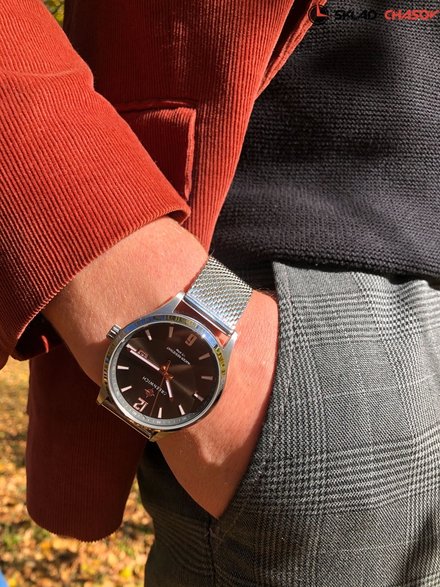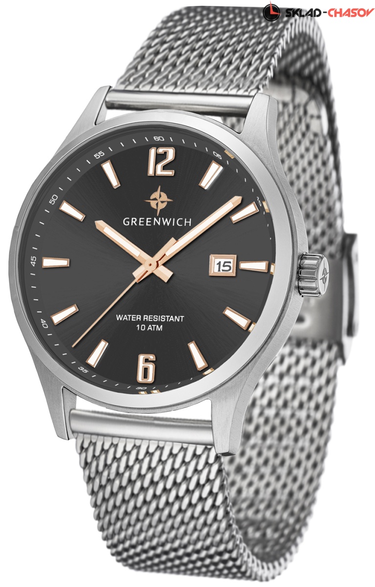 Массивный 43-миллиметровый корпус часов серии Octopus с полированным безелем сделан из гипоаллергенной нержавеющей стали. Циферблат с полировкой вмещает крупные часовую и минутную стрелки с люминесцентным покрытием. Хорошо читается и секундная стрелка, которая отсчитывает время по специально маркированному кругу. Индикатор в положении «3 часа» показывает дату. Надежный японский механизм обеспечивает бесперебойную работу. О качестве часов говорит повышенная водостойкость — 10 атмосфер. Модель дополняет плотный ремешок из натуральной кожи, стальной браслет или браслет миланского плетения. Бренд Greenwich отличается вниманием к деталям: на заводную головку и заднюю крышку нанесен логотип, стилизованное изображение розы ветров. На задней крышке — гравировка корабля, плывущего навстречу приключениям.