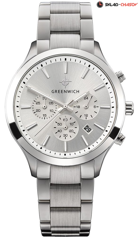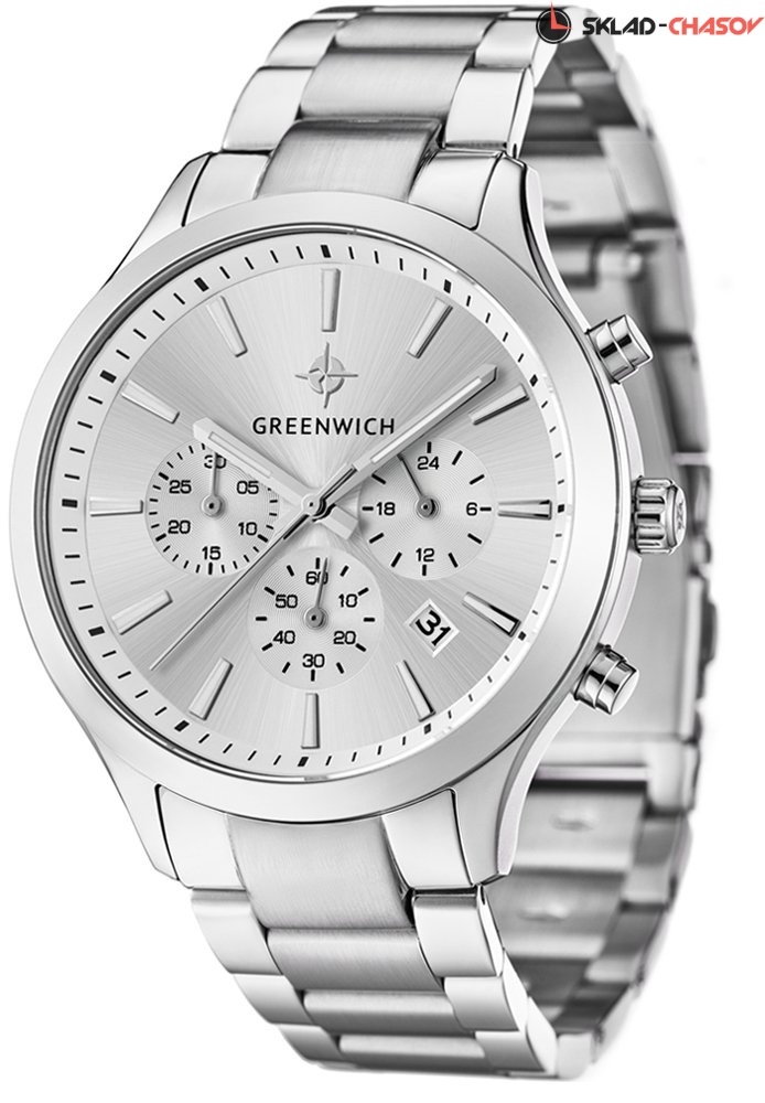 Задняя крышка часов украшена изображениями «розы ветров» и корабля, который является символом марки Greenwich.