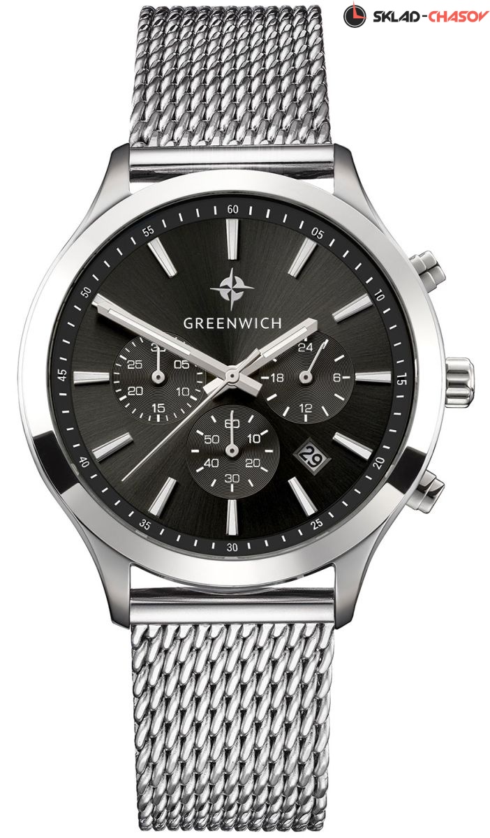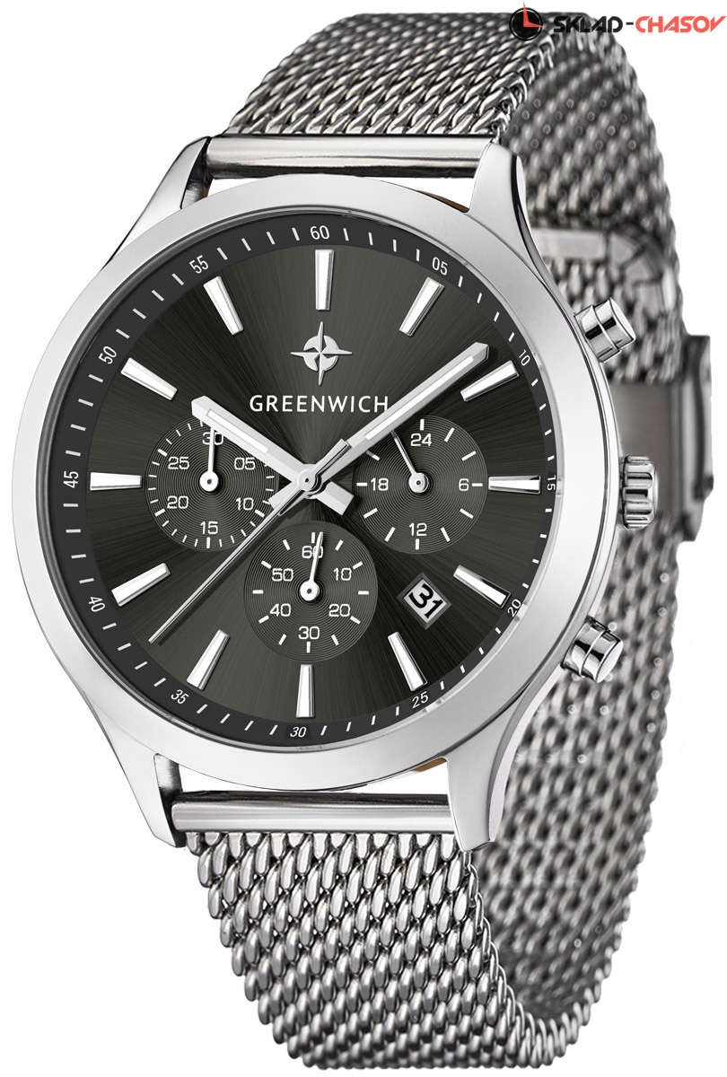 Кварцевый хронограф помещен в круглый корпус из гипоаллергенной нержавеющей стали. На циферблате темно-синего цвета дизайнеры бренда продуманно разместили счетчики хронографа: 60 секунд, 30-минут и 24 часа. В центральной части — три стрелки: крупные часовая, минутная и секундная. В положении «5 часов» находится окошко даты. Крупные кнопки хронографа и рифленая заводная головка удобны в использовании. Надежный японский механизм обеспечивает бесперебойную работу. В часах установлено прочное минеральное стекло. На заводной головке и задней крышке расположился логотип: стилизованное изображение розы ветров. На задней крышке — гравировка корабля, плывущего навстречу приключениям.