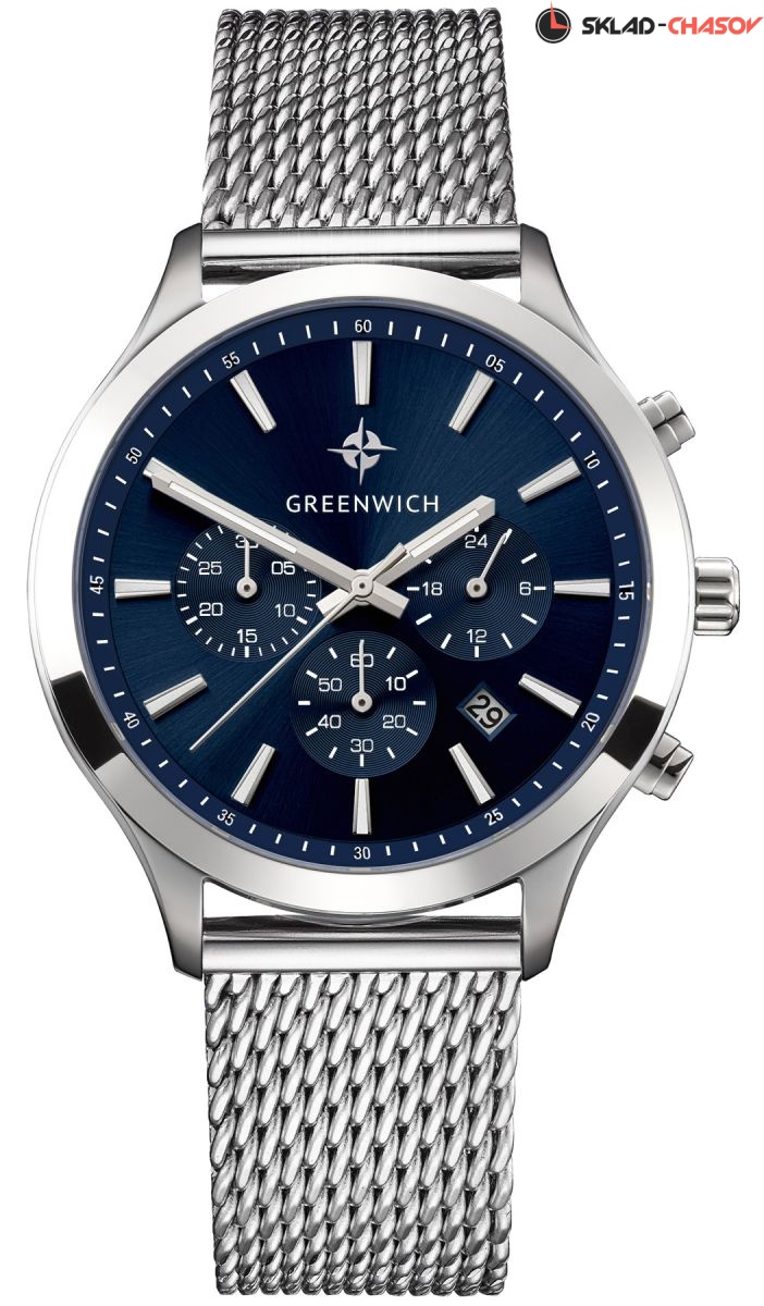 Кварцевый хронограф помещен в круглый корпус из гипоаллергенной нержавеющей стали. На циферблате темно-синего цвета дизайнеры бренда продуманно разместили счетчики хронографа: 60 секунд, 30-минут и 24 часа. В центральной части — три стрелки: крупные часовая, минутная и секундная. В положении «5 часов» находится окошко даты. Крупные кнопки хронографа и рифленая заводная головка удобны в использовании. Надежный японский механизм обеспечивает бесперебойную работу. В часах установлено прочное минеральное стекло. На заводной головке и задней крышке расположился логотип: стилизованное изображение розы ветров. На задней крышке — гравировка корабля, плывущего навстречу приключениям.