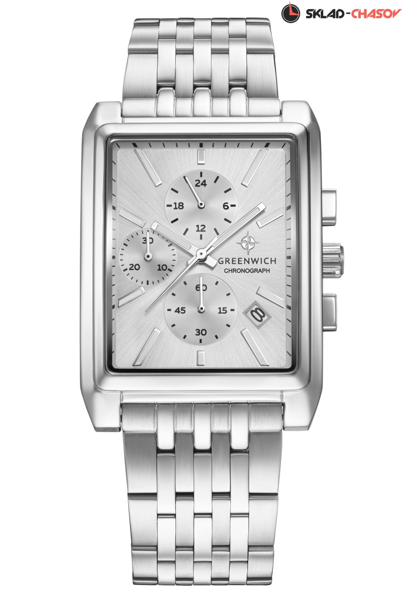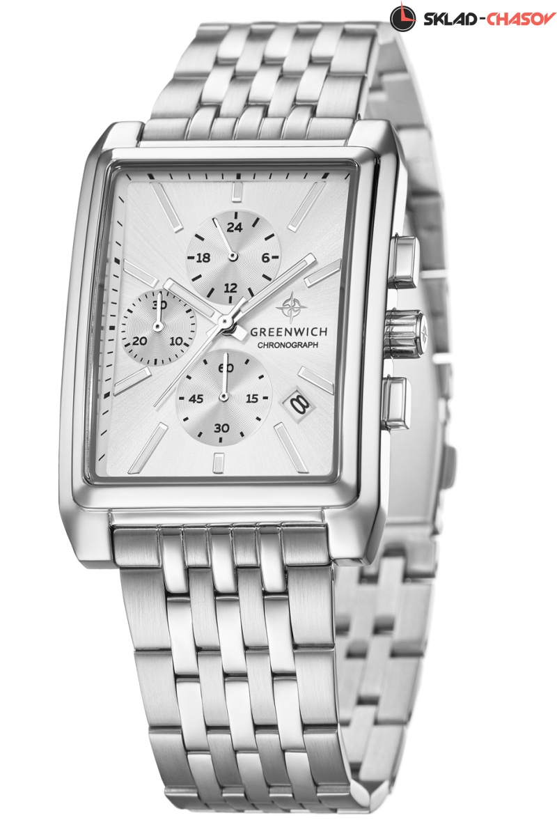 Кварцевый механизм часов серии Galeon Chrono позволяет точно определять время, дату и пользоваться функциями хронографа: засекать время в минутах и секундах. Плюс к этому, на белом циферблате модели есть индикатор 24-х часов (демонстрирует время в формате 24-х часов). Защищает механизм корпус прямоугольной формы из нержавеющей стали. Стрелки и риски светятся в темноте — они покрыты специальным люминесцентным составом. Браслет часов, как и застежка-клипса, выполнен из нержавеющей стали. Серия Galeon Chrono - это сочетание спортивного функционала и классической элегантности. Часы хорошо дополнят тот образ, который вы выберете сегодня, от классического костюма до расслабленного casual.