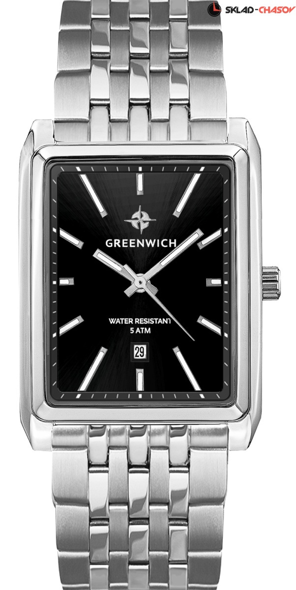 Кварцевый механизм часов серии Galeon скрыт в стильном корпусе прямоугольной формы. Нержавеющая сталь - материал, из которого этот корпус сделан - не вызывает аллергических реакций и подходит для частого контакта с кожей запястья. Крупные стрелки с люминесцентным покрытием движутся по черному циферблату. Окошко даты расположилось в позиции "6 часов". Браслет собран из стальных звеньев, где зеркальная полировка эффектно чередуется с матированием. Застежка-клипса надежно удерживает аксессуар на запястье. Часы серии Galeon будут уместны в сочетании с любыми вещами вашего гардероба: от классического костюма до одежды в стиле casual.