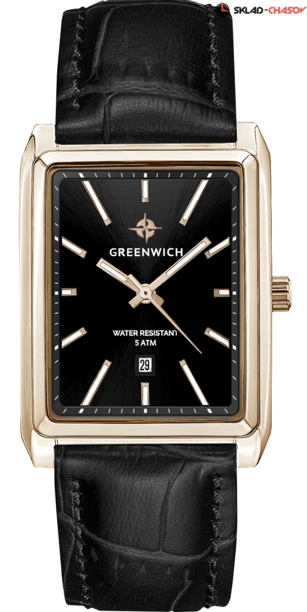 Кварцевый механизм часов серии Galeon скрыт в стильном корпусе прямоугольной формы. Нержавеющая сталь - материал, из которого этот корпус сделан - не вызывает аллергических реакций и подходит для частого контакта с кожей запястья. В качестве украшения используется PVD-покрытие из розового золота. Это не только эффектный способ декора, но и дополнительная защита нержавеющей стали. Крупные стрелки с люминесцентным покрытием движутся по черному циферблату. Окошко даты расположилось в позиции "6 часов". Ремешок часов сделан из натуральной кожи черного цвета. Застежка-пряжка из нержавеющей стали украшена логотипом бренда. Часы серии Galeon будут уместны в сочетании с любыми вещами вашего гардероба: от классического костюма до одежды в стиле casual.