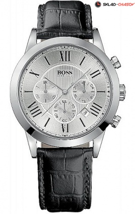 Кварцевый хронограф, 3 стрелки, корпус из нержавеющей стали D = 43 мм., серебристый циферблат, минеральное стекло, ремешок из натуральной кожи с фирменной застёжкой