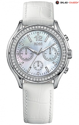 Кварцевый хронограф, корпус из нержавеющей стали, D = 40 мм., перламутровый циферблат, кристалы по безелю, минеральное стекло, ремешок из натуральной кожи с фирменной застёжкой