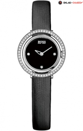Кварцевые часы, 2 стрелки, мех-м Miyota, корпус из нержавеющей стали, D=25.3 мм, циферблат с чёрной эмалью, кристаллы Swarovski, сатиновый ремешок с фирменной застёжкой, WR 30 m.
