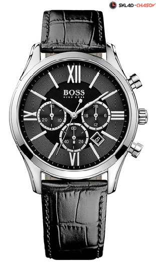 Кварцевый механизм, хронограф, корпус из нержавеющей стали, диаметр корпуса 43 мм, минеральное стекло, черный ремешок из натуральной кожи. Водозащита 5 АТМ.